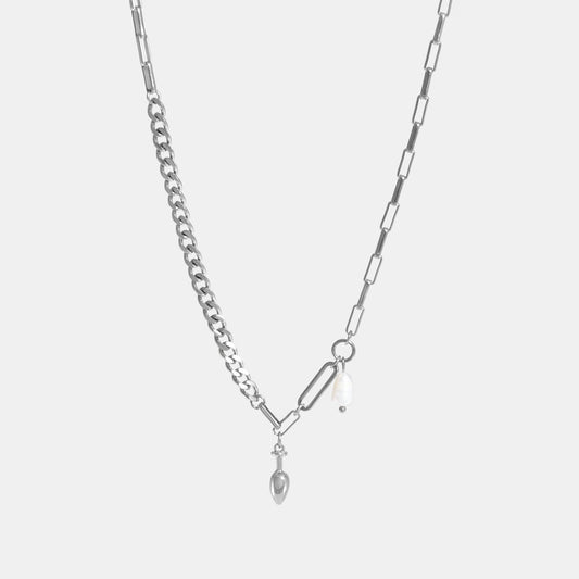 KK Pearl & Cuban Chain Necklace Stainless Steel