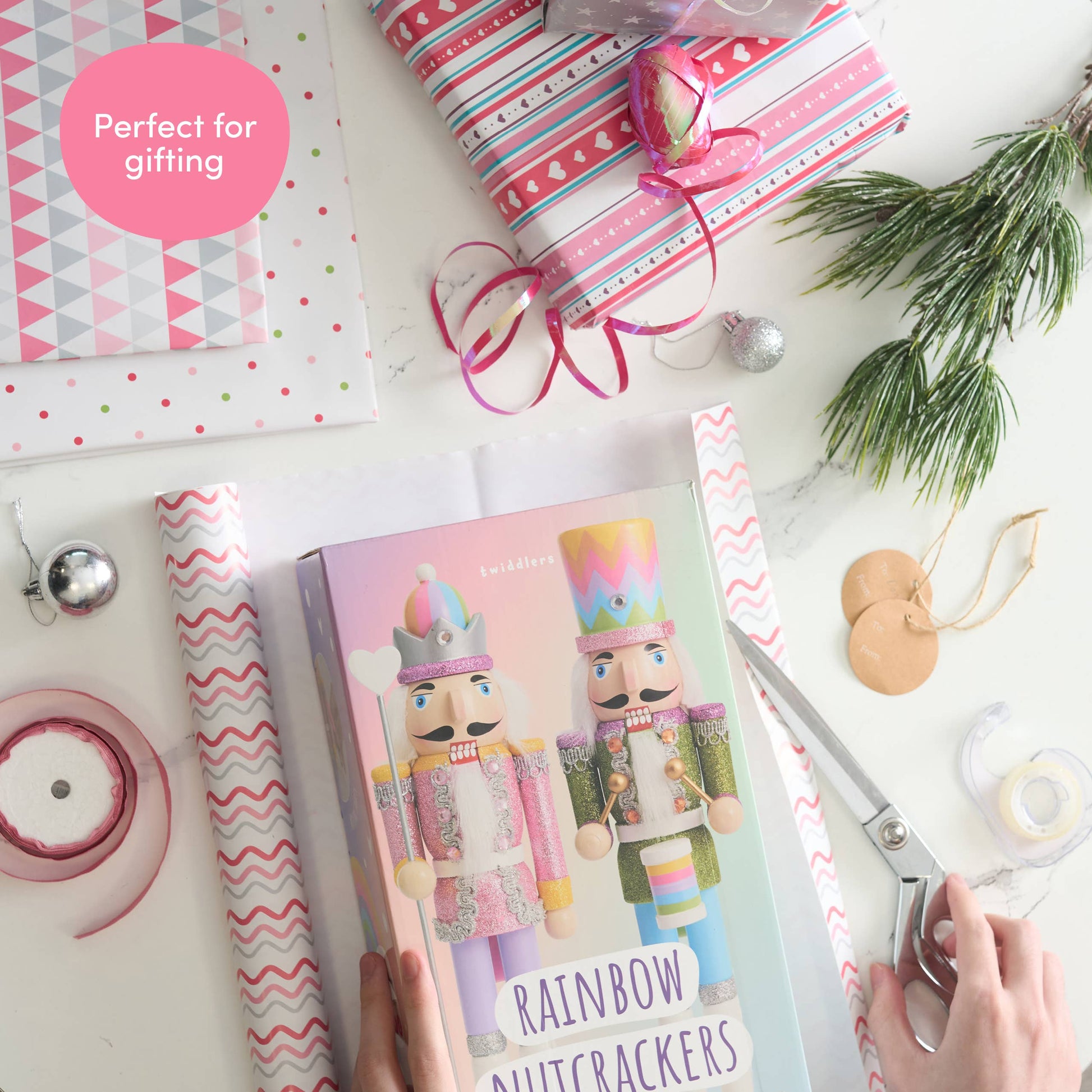 Colourful Nutcracker Fun: Our 12" decorative Christmas nutcracker soldiers feature a wonderful rainbow design, perfect as bright and vibrant pride Christmas ornaments for the home.