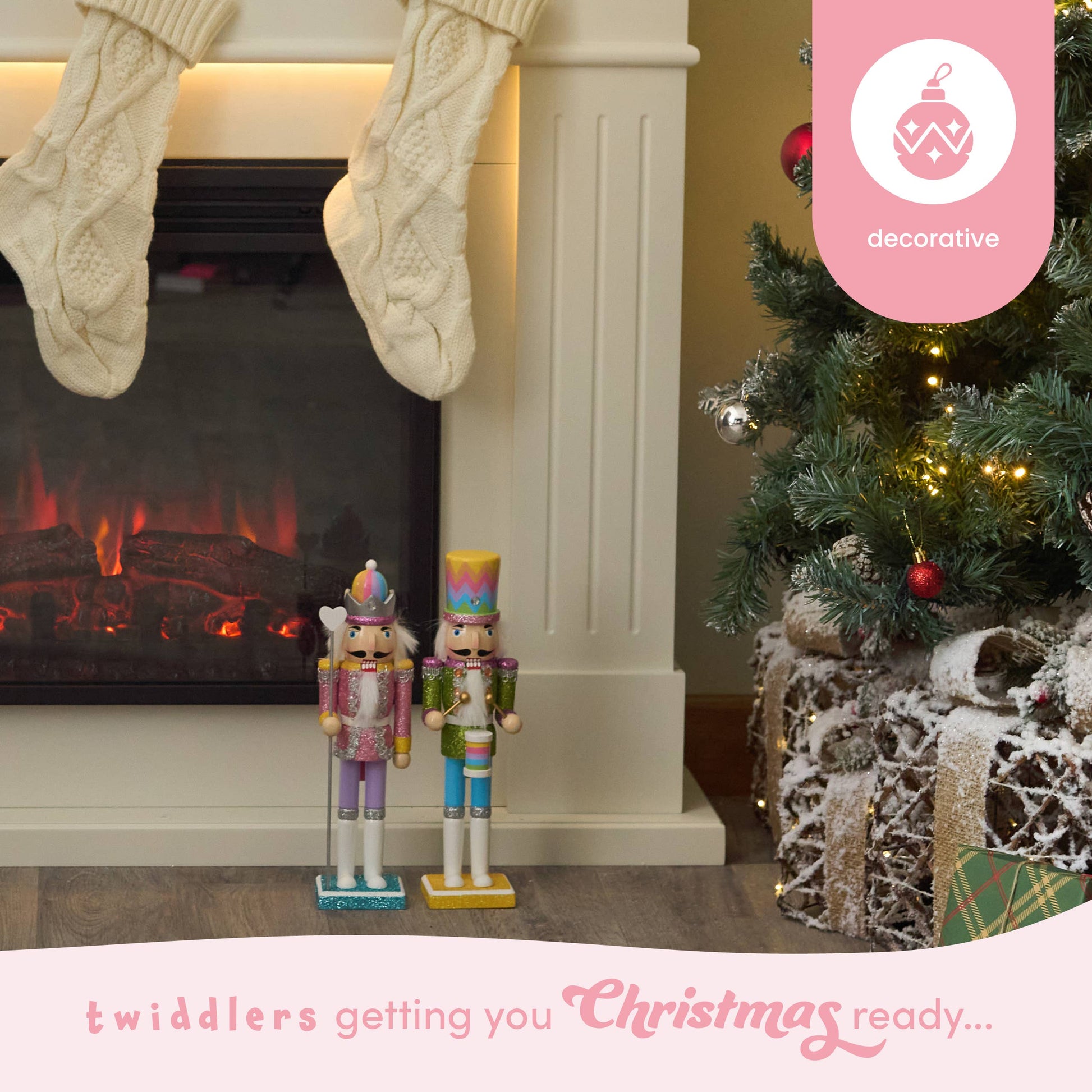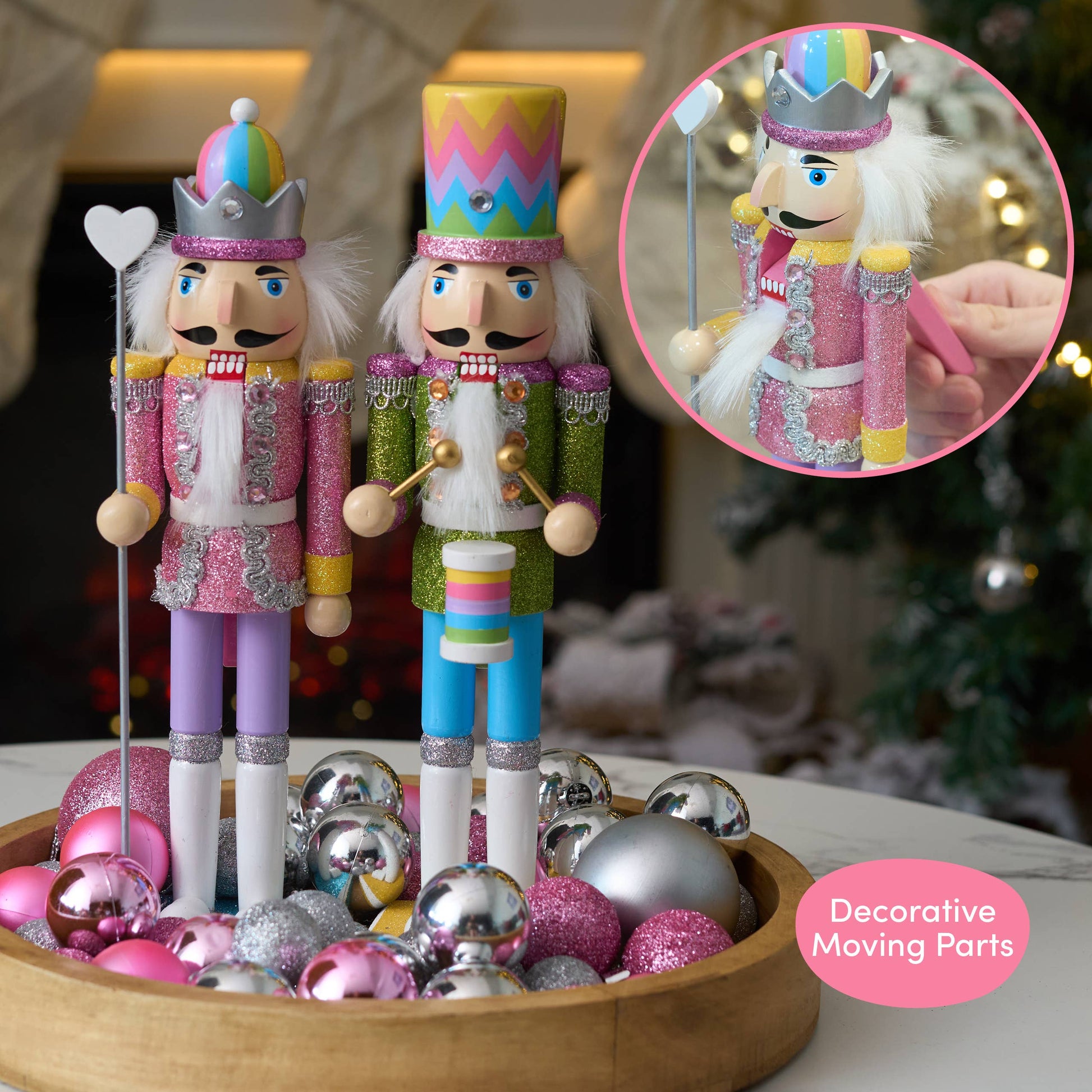 Premium Craftsmanship: Our rainbow Nutcracker Christmas decorations have moving mouths, and stand tall on a solid wooden base, so will stay well balanced in position. The perfect size to be displayed over the fireplace, on your mantlepiece, window sills or on your Christmas table.