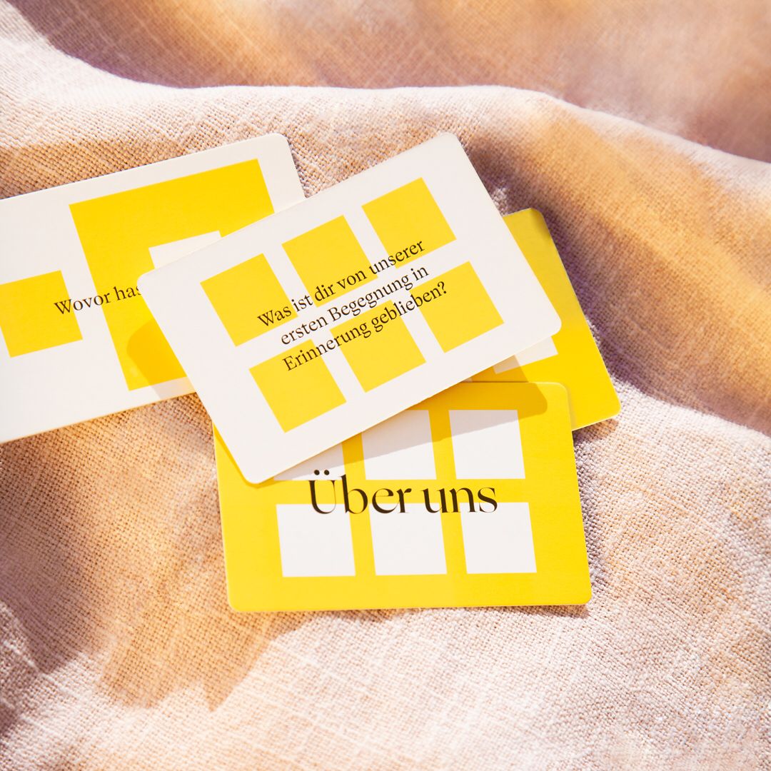 Wir stellen uns zu selten die wirklich wichtigen Fragen. Weil Zeit und Mut oder ein Anlass fehlen. 90 Fragen ist dieser Anlass. Es bietet Gesprächskarten für zwei vertraute Personen – ganz gleich ob Freund:innen, Partner:innen oder Familienmitglieder, die zu Nähe bereit sind. Denn 90 Fragen öffnet Lippen und Herzen, befeuert Offenheit, festigt Annahmen, wirft andere über den Haufen, biegt Mundwinkel, lässt stutzen, rötet Wangen, gräbt tief, fordert Mut, hebt Augenbrauen und kitzelt Komplimente heraus.