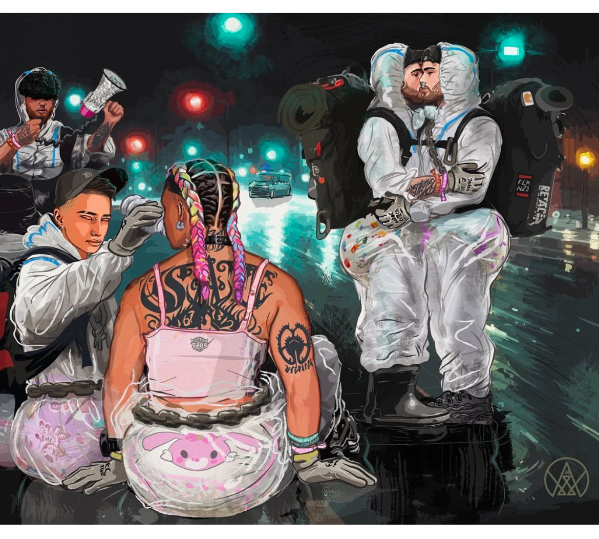 He studied illustration in Germany & New York. His comics introduce new alternative fetish characters in their „uniforms“ to a fetish scene that is obsessed with police and military gear. His artwork is an unapologetic display of deviant fetishes and a celebration of utopian comradery between queers.