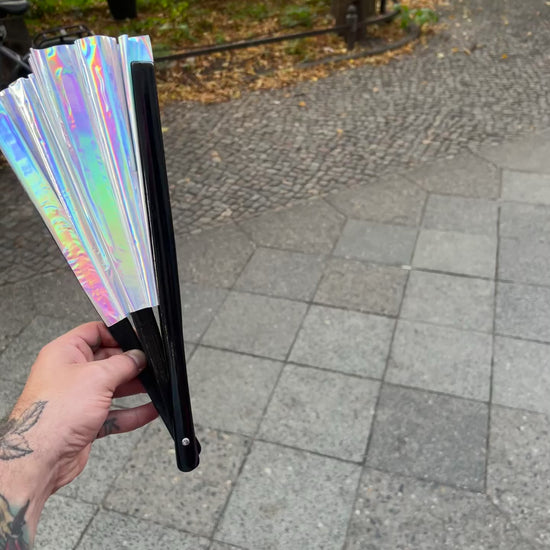 Big shiny Fan "Classic Holo" with Bamboo handle