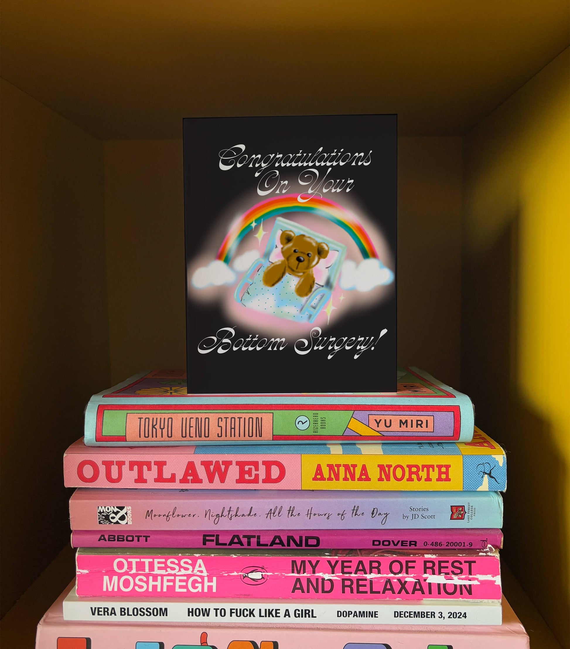A2 card. Printed on 110lb paper. Blank inside. Airbrush style teddy bear recovering after bottom surgery. 100% inspired by the kind of cards you see at the hospital gift shops. <3