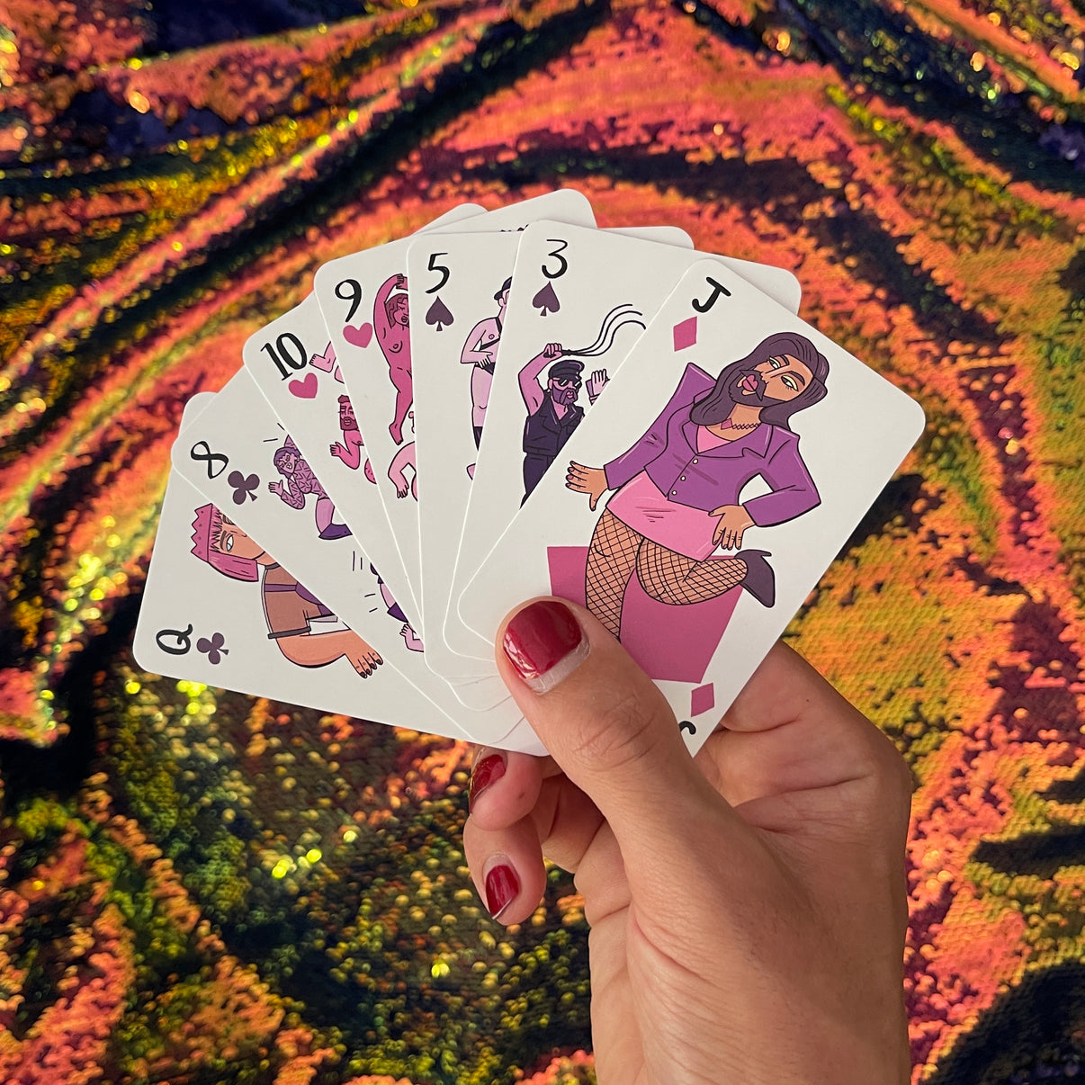 Perfect for queer Poker nights, Rummy raves, Crazy Eight kikis, Blackjack balls and Texas Hold Me’s ;)