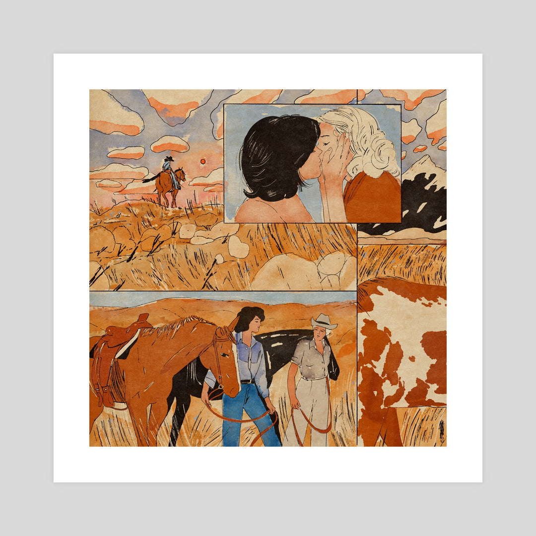 Illustrator and print designer Enikő Katalin Eged studied at the Hungarian University of Fine Arts and Rome’s Accademia di Belle Arti, and you can read these international influences in her pieces. She loves illustrative narratives with a strong atmosphere and the feeling of familiarity. Abstract, intuitive forms as patterns and feelings are the most powerful side of her art. Her favourite topics are sapphic love, memories, and nature.