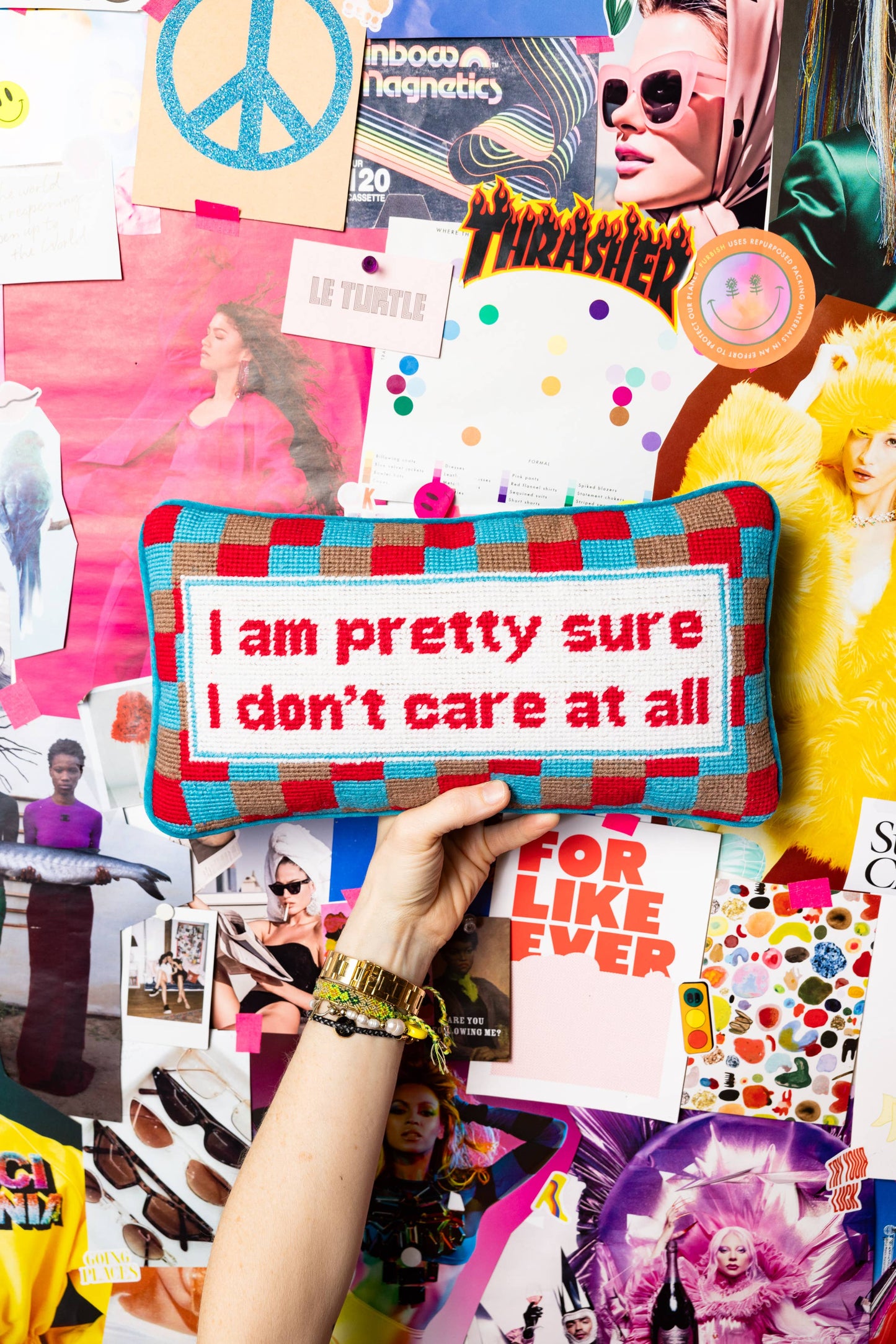 Don't Care Needlepoint Pillow