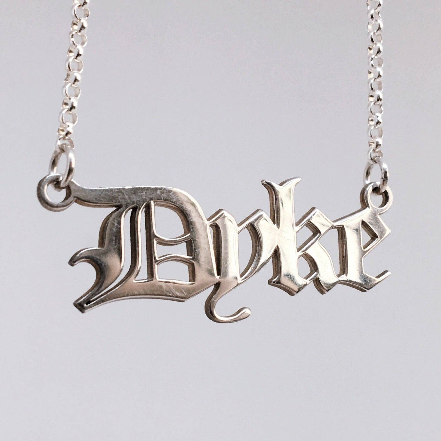 The Necklace is hand crafted solid .925 sterling silver & the name measures approx 3cm wide x 1cm tall. The Chain measures 45cm long