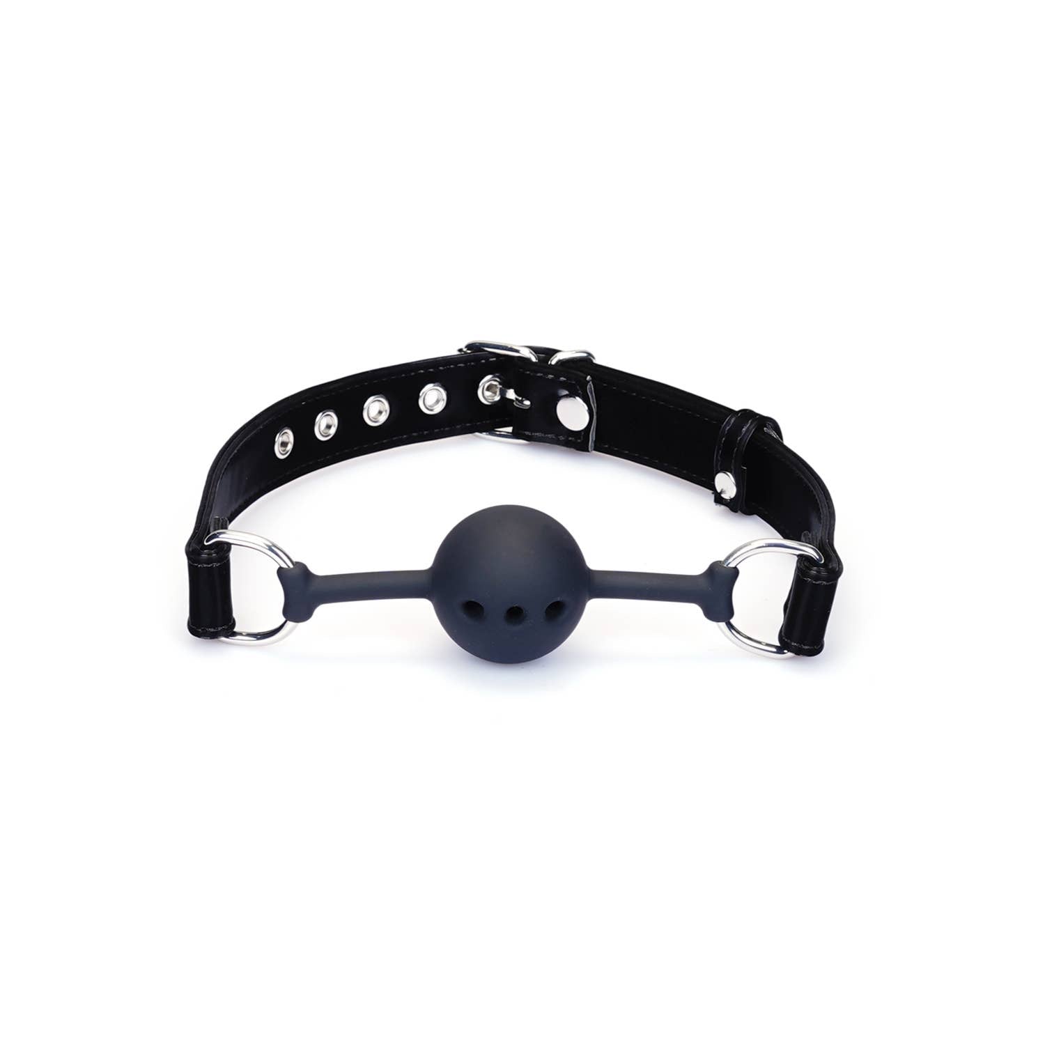 1. Iridescent black PU material leather ball gag for total body submission and domination