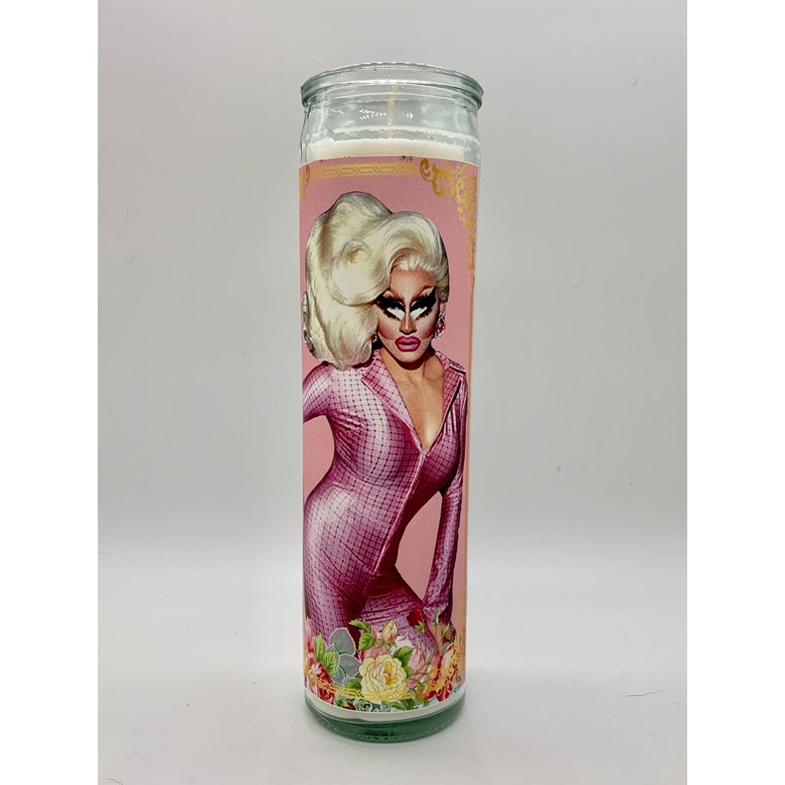 Tall white candle, hand poured in Mexico, design and assembled in the USA.