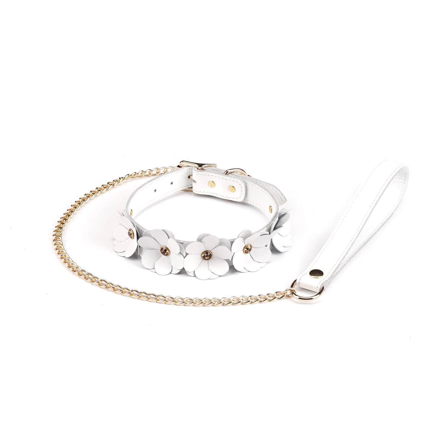 White Leather Flowers Collar with Leash